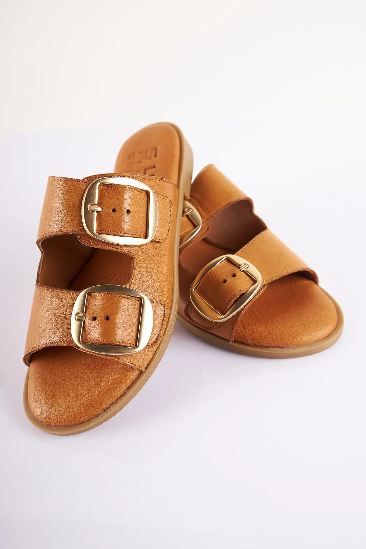 NO37 Taba Hakiki Deri Çift Tokalı Terlik